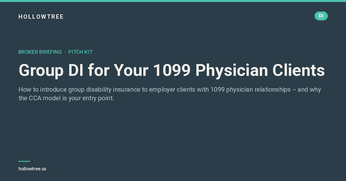 How to introduce group disability insurance to employer clients with 1099 physician relationships -- and why the CCA model is your entry point.